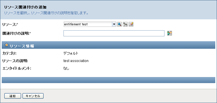 既存の役割に関連付けられたエンタイトルメント Roles Based Provisioning Moduleの以前のリリースで定義した役割は、関連付けられたエンタイトルメントを持っている可能性があります。役割がそれに関連付けられたエンタイトルメントを持っている場合、ユーザインタフェースでは、タブを表示します。これにより、エンタイトルメントマッピングを確認し、必要に応じてそれを削除できます。このリリースでは役割のエンタイトルメントマッピングは引き続き機能しますが、Novellでは現在、役割ではなく、リソースとエンタイトルメントを関連付けることをお勧めしています。