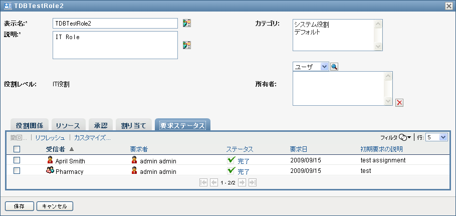役割割り当て要求のステータスを表示する