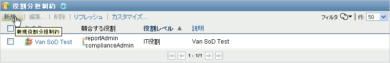 ユーザアプリケーションにより、現在カタログで定義されている義務の分離制約のリストが表示されます。