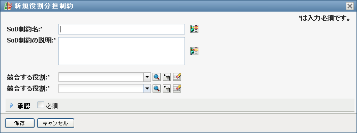 SoD制約が例外の承認を必要とする場合、このボックスを選択します。 SoD制約が例外の承認を必要としない場合、このボックスを選択解除します。 |