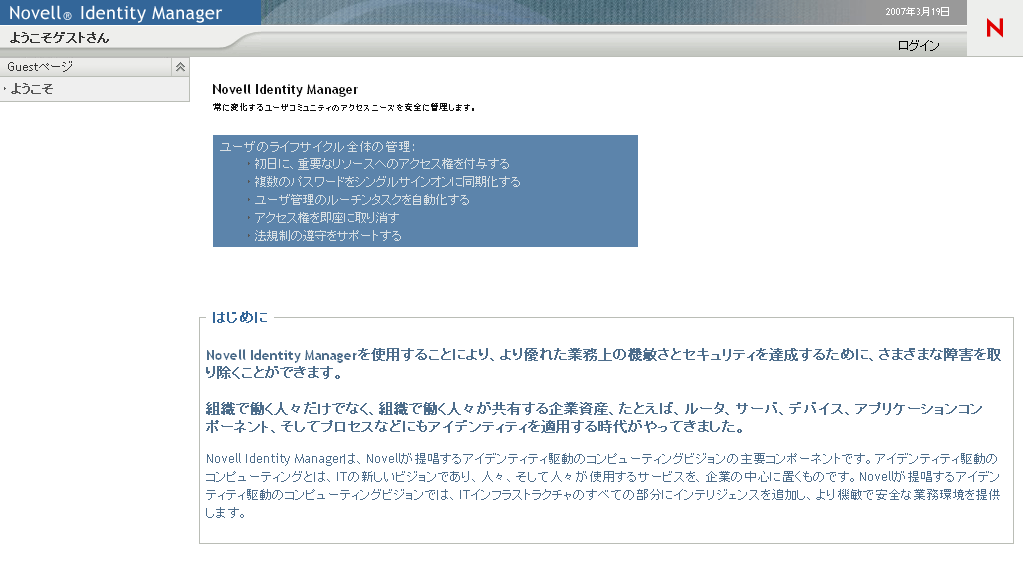 図 1-2 ユーザアプリケーションの[ようこそゲストさん]ページ