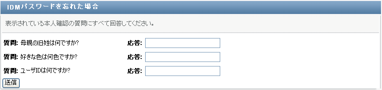 表示される「本人確認の質問」に回答し、[送信]をクリックします。 たとえば、次のような指定内容です。