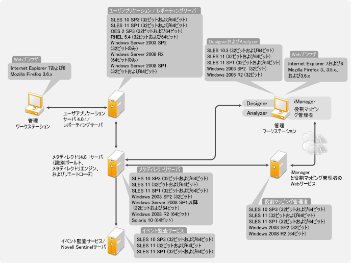 図 3-1は、Novell Identity Manager 4.0.1の統合インストーラでサポートされているプラットフォームを示しています。