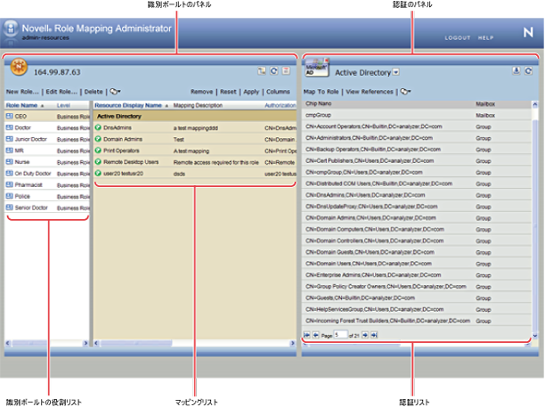 役割マッピング管理者とは、主なITシステム内部で付与される権限および許可を検出するWebサービスのことです。このサービスによって、IT管理者だけでなく、ビジネスアナリストがどの権限がどのビジネス役割に関連付いているかを定義および保守できます。
