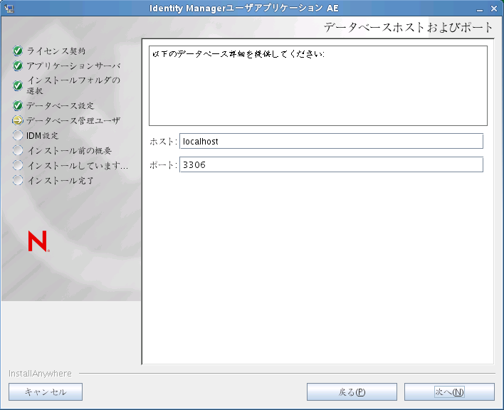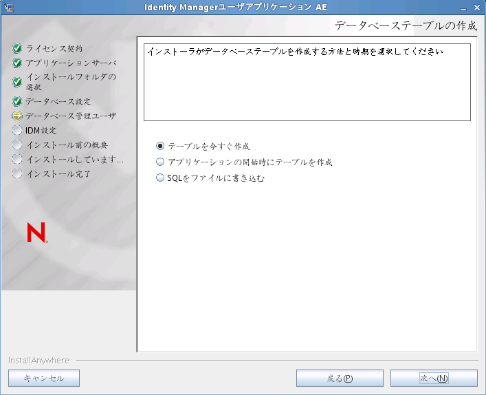 インストーラは、直接テーブルを作成するため、および.SQLファイルを作成するための両方の場合にデータベースに接続する必要があります。データベース接続をテストして、それが失敗した場合でも、インストールを続行できます。その場合、『ユーザアプリケーション: 管理ガイド』で説明されるように、インストール後にテーブルを作成する必要があります。 |