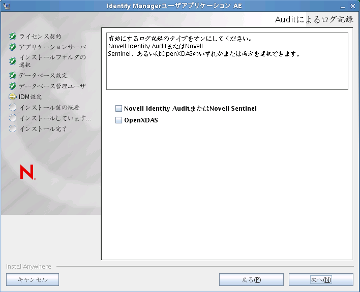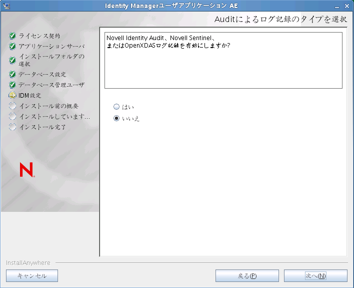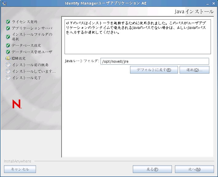 Novell-Custom-Install.logには、インストール中に行ったユーザアプリケーション環境設定についての情報があります。