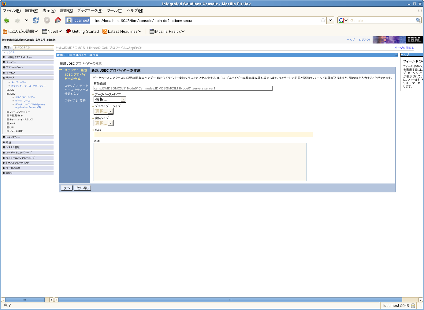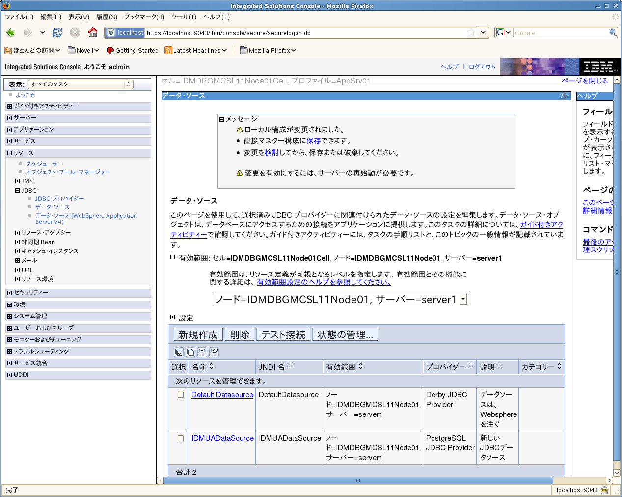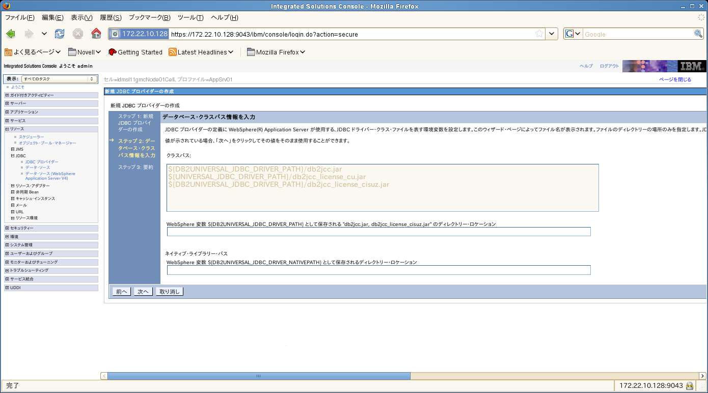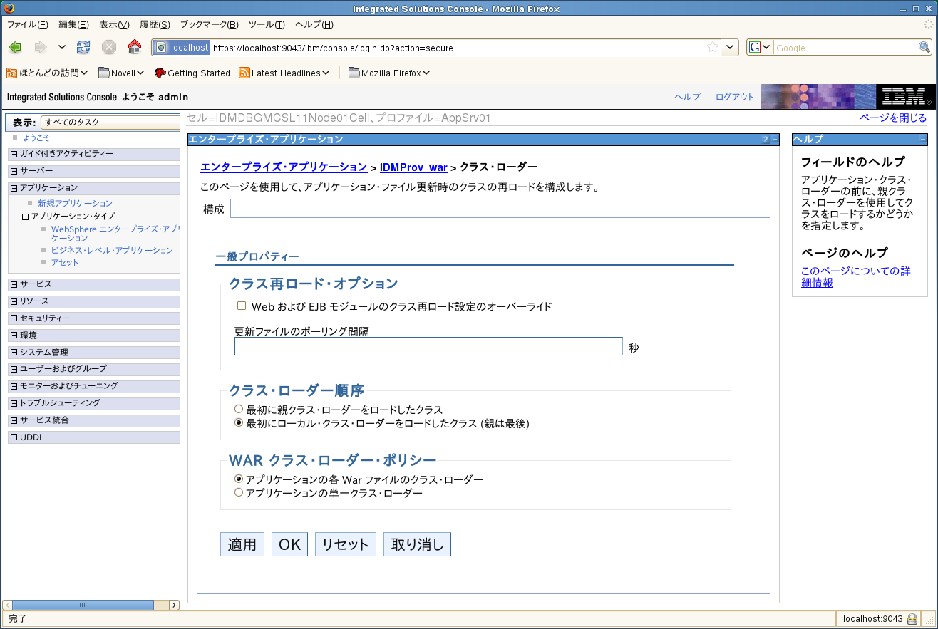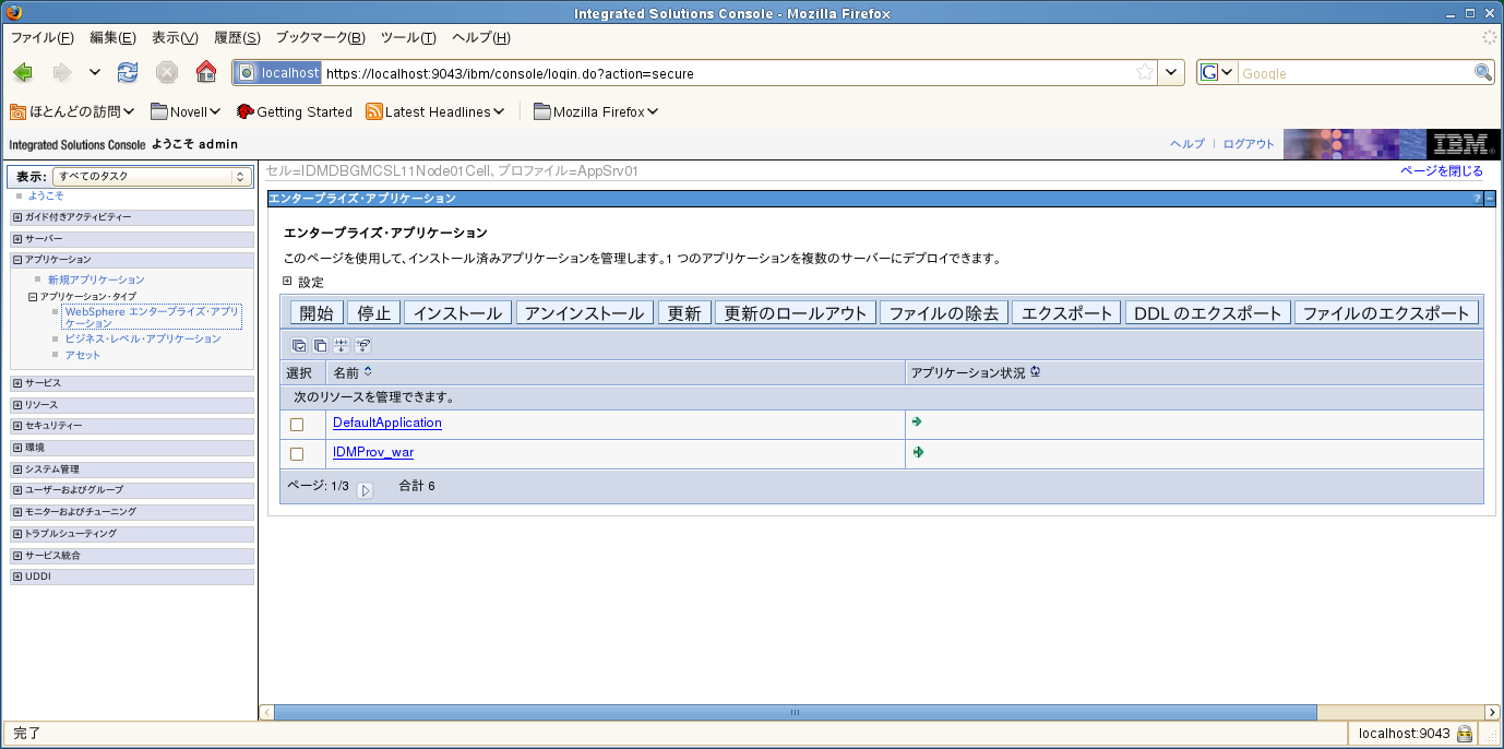 WebSphere管理者コンソールに管理者ユーザとしてログインします。