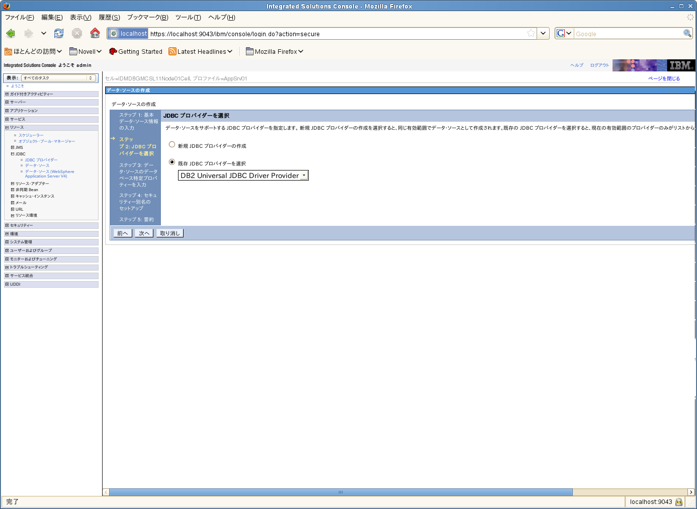 上で作成したJDBCプロバイダを選択します。