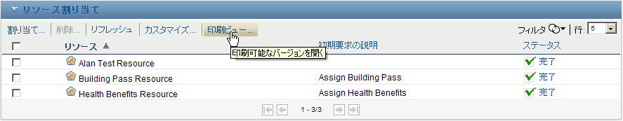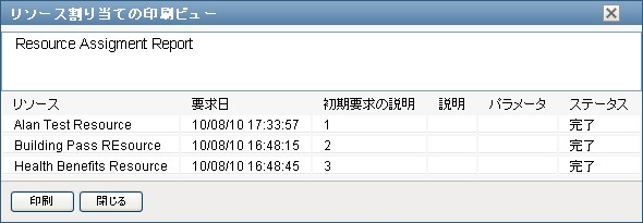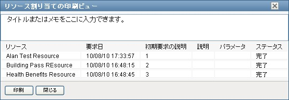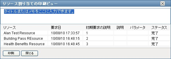 ダッシュボードのセクションを使用すると、ページ上に表示されたリソース割り当てのリストを印刷することができます。プリントアウトには画面上のテキストのみが含まれるという点を除いて、画面上に表示される内容は、リソース割り当てリストを印刷した際に表示される内容と基本的に同じです。カラムまたはカラムに表示されるイメージは、プリントアウトには表示されません。