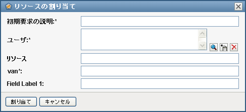 [ワークダッシュボード]には、ダイアログボックスが表示され、これにより要求するリソースを指定できます。