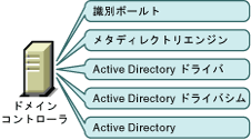 Active Directoryドメインコントローラとは別のコンピュータにアイデンティティボールト、メタディレクトリエンジン、およびドライバをインストールできます。この環境設定では、ドメインコントローラがあらゆるIdentity Managerソフトウェアと無関係になります。