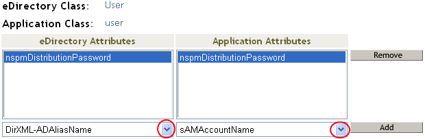 NOTE:sAMAccountNameがeDirectory属性にマッピングされていない場合は、sAMAccountNameをDirXML-ADAlias名にマッピングします。