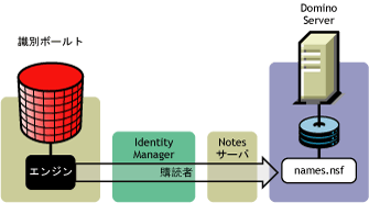 購読者チャネルは、アイデンティティボールトからLotus Notesへの通信用チャネルです。次の図は、このデータフローを示したものです。