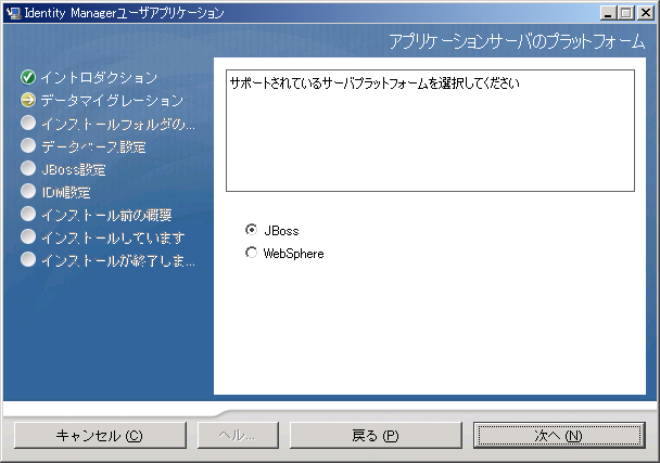 JBossアプリケーションサーバのプラットフォームを選択して、[