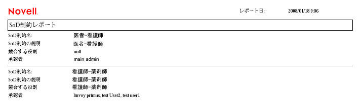 すべてのSoD制約の中で目立つ違反または例外を表示するには、[]を選択します。 または、[]を選択して、単一のSoD制約の違反に関するレポートに焦点を当てます。