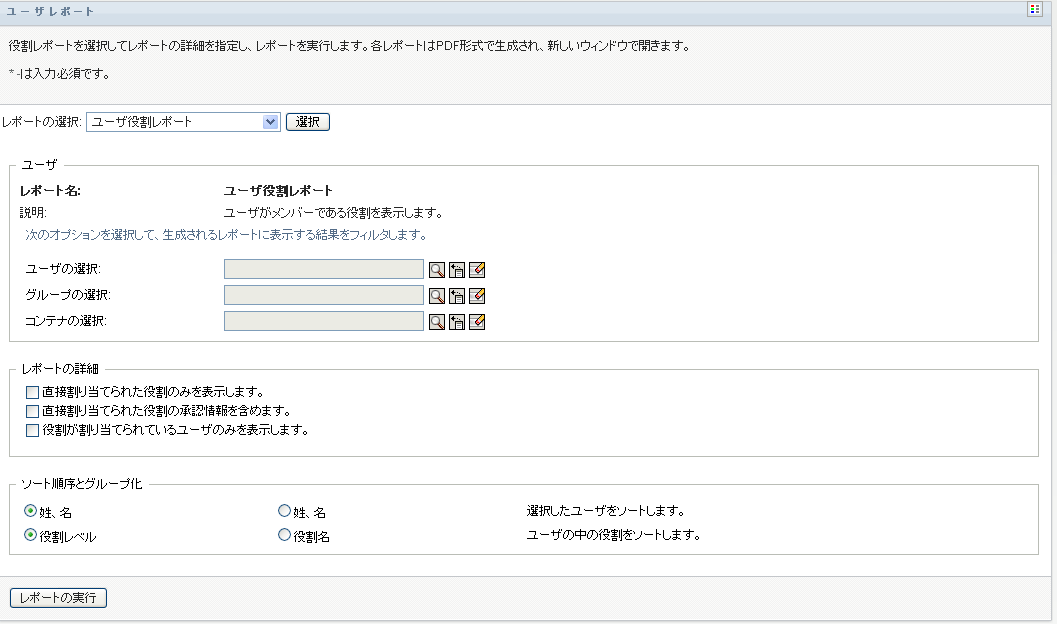 ユーザエンタイトルメントレポートを作成および表示する方法: