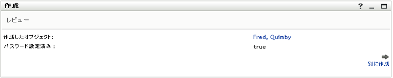 ユーザとパスワードが作成され、[]パネルに作成結果の概要が表示されます。