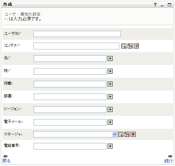 特定の属性の指定時に使用可能なボタンについては、セクション 8.2, ユーザの作成を参照してください。