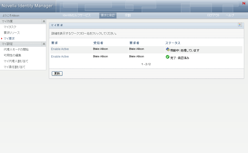 特定の要求の詳細を表示するには、名前をクリックして要求を選択します。