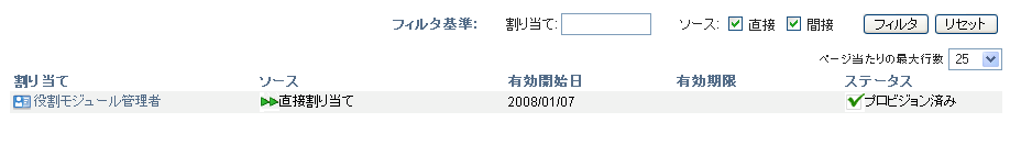 役割割り当ておよびソースによるフィルタ(マイ役割アクションで利用可能)