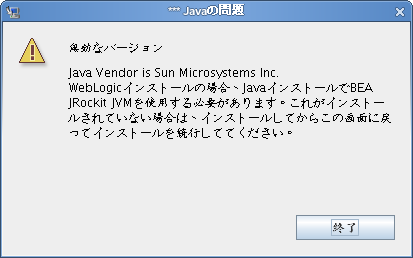 JRockit Java環境を使用して、コマンドラインから次のプラットフォームのインストーラを開始します。