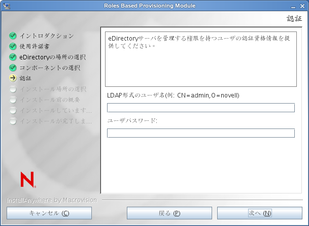 インストーラにより、認証画面が表示されます。