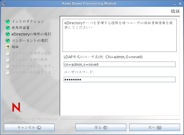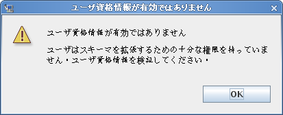 ユーザ資格情報が有効でない場合、またはユーザが必要な権限を持っていない場合、インストーラにより次のようなエラー画面が表示されます。