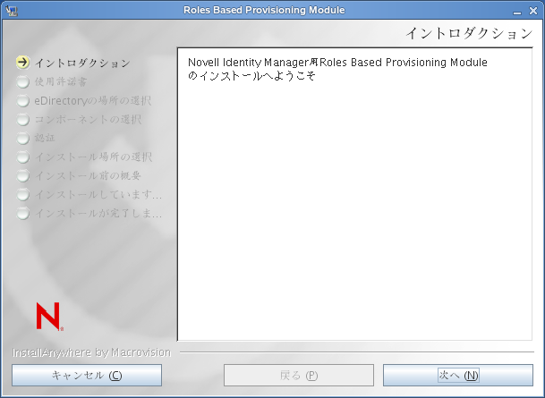 インストーラにより、導入画面が表示されます。