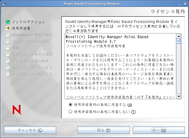 インストーラにより使用許諾契約画面が表示されます。