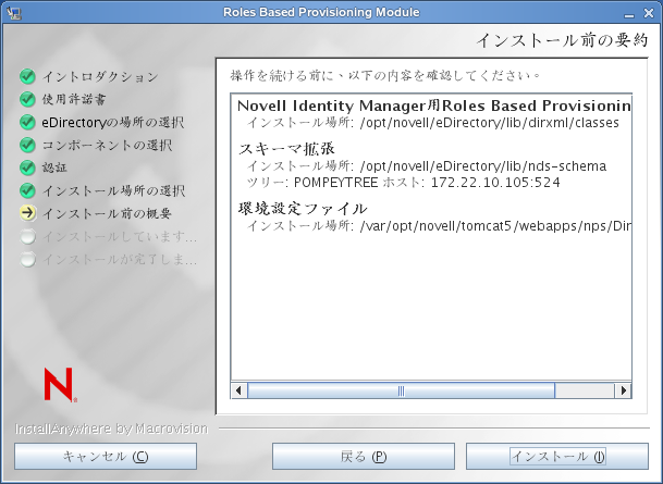 インストーラにより[インストール前の概要]画面が表示されます。