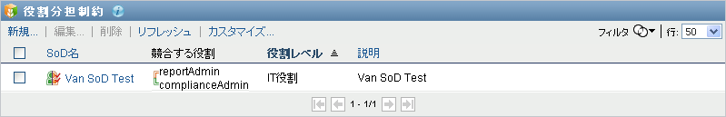 ユーザアプリケーションにより、現在カタログで定義されている義務の分離制約のリストが表示されます。