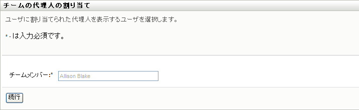 このチームメンバーに関する委任割り当てがすでに存在している場合は、その情報が表示されます。