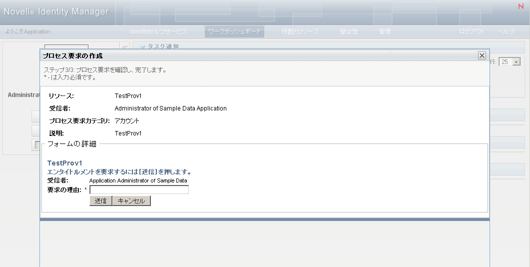ユーザアプリケーションは、現在のユーザの特定のプロセス要求(プロビジョニング要求とも呼ばれる)へのディープリンクにアクセスを与えます。この機能は、マネージャが特定のプロセス要求URLを従業員に送信できるようにし、このためこの従業員はユーザアプリケーションを通さずにすばやくプロセスを要求できます。プロセス要求にディープリンクすると、要求フォームはページの本体にユーザアプリケーションの見出しとともに表示されます。