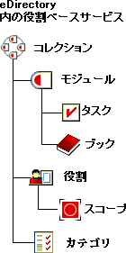 役割の定義作業は、rbsRoleオブジェクトの作成と作成した役割で実行できるタスクの指定から構成されます。 rbsRolesは、rbsCollectionコンテナ内にのみ作成できるコンテナオブジェクトです。 役割のメンバーになることができるのは、ユーザ、グループ、組織、職種、部門です。役割のメンバーは、ツリー内の特定のスコープで役割に関連付けられます。rbsTaskオブジェクトとrbsBookオブジェクトは、rbsRoleオブジェクトに割り当てられます。 |