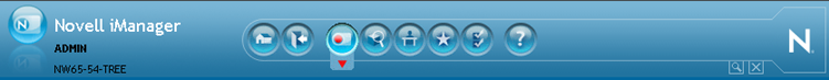 さらに、左上のヘッダフレームでは、 iManagerで現在認証されているユーザとツリー名が識別されます。