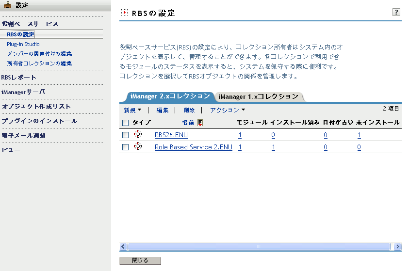 iManager 2.xコレクション: 現在のRBSコレクションが表示されます。