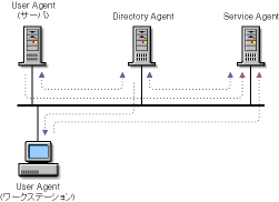ユーザエージェントおよびサービスエージェントは、クライアントアプリケーションおよびネットワークサービスに代わって、動的にネットワークサービスを検索します。
