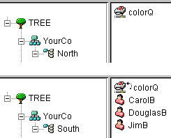 別名オブジェクトによって、元のColorQオブジェクトがポイントされるため、SouthコンテナにおいてColorQはローカルオブジェクトとして印刷設定されます。