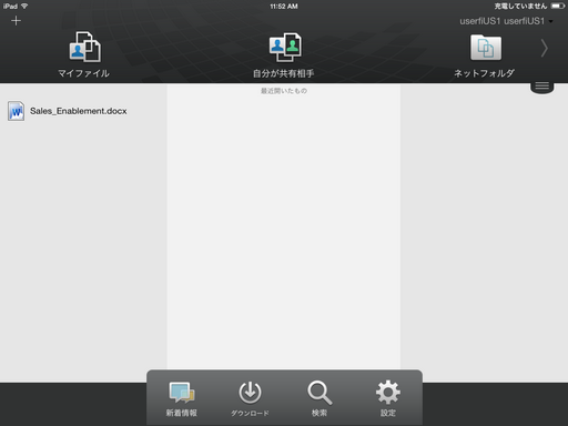 このエリアを使用して、アクセス可能な文書に最近加えられた変更を見ることができます。新規ファイルと変更されたファイルが、変更したユーザの情報と共に表示されます。