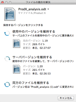 使用中のバージョンを維持する: Filrサーバ上のファイルを手持ちのバージョンに置き換えます。