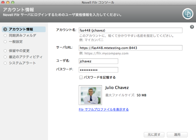 14.0 FilrデスクトップアプリケーションのFilrアカウント情報の変更