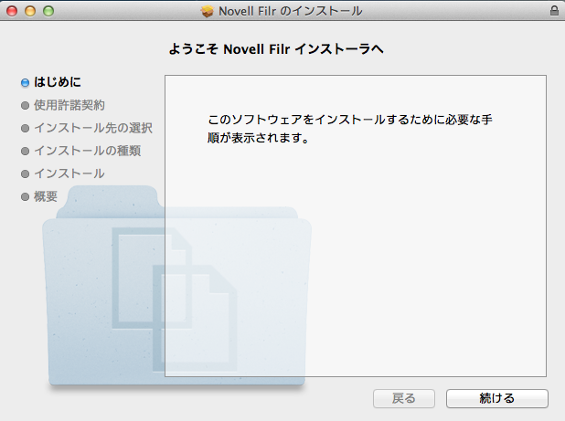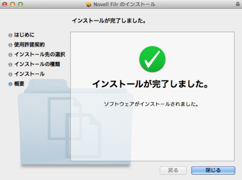 ダウンロードが完了したら、NovellFilr-version.pkgファイルを開きます。