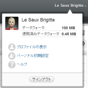データクォータ情報: (設定による)現在のデータクォータと使用中のクォータ量が表示されます。