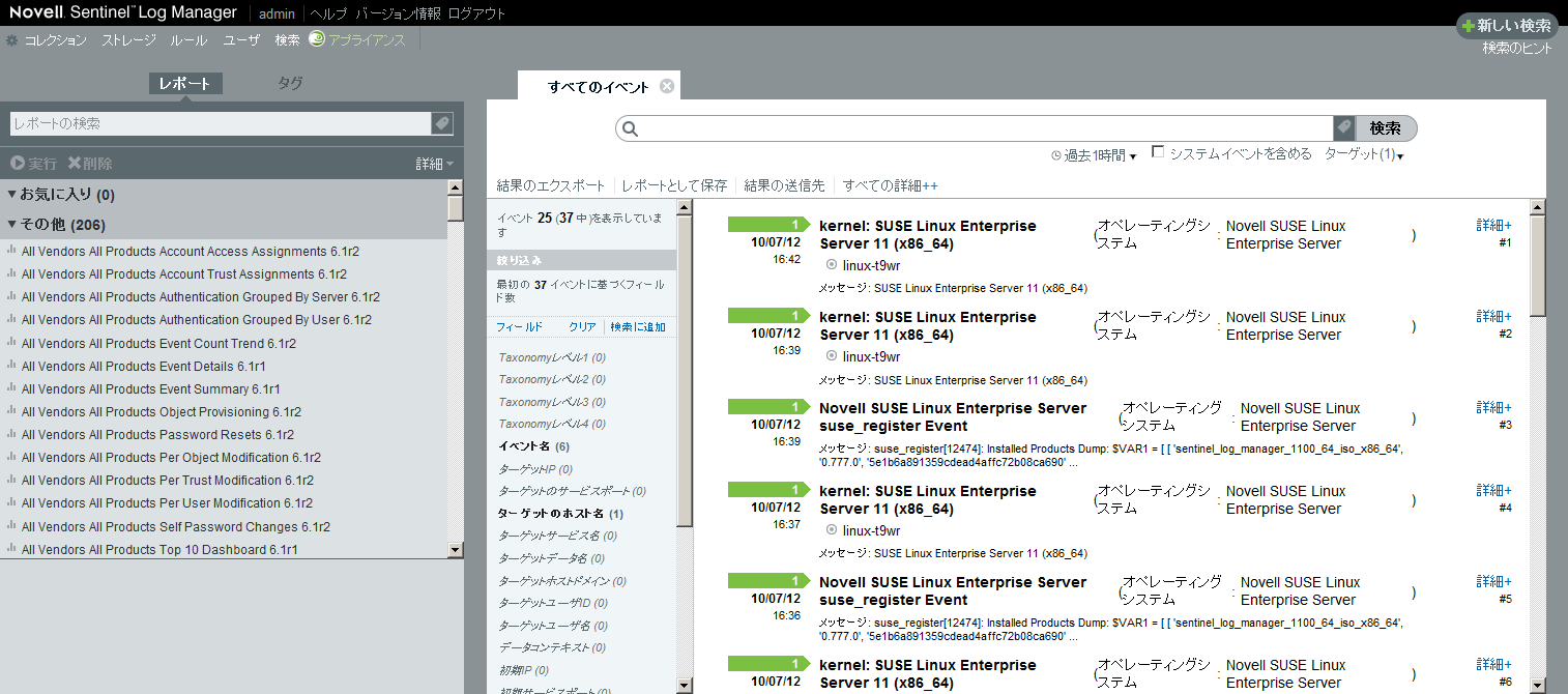 Novell Sentinel Log ManagerのWebユーザインタフェースが表示されます。