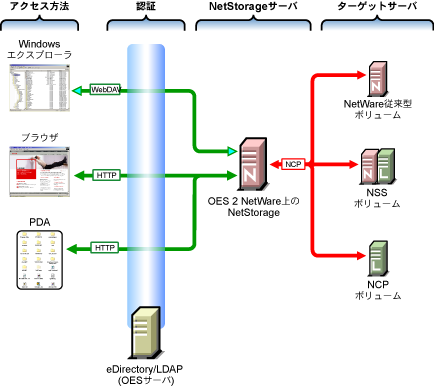 図 17-5 OES 2 NetWareでのNetStorageの動作