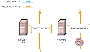 ただしNetWare 5.1以降のTIMESYNC NLMでは、Timesyncパケットの使用と送出が可能です。またXNTPD NLMは、必要に応じてTimesyncパケットを送出できます。