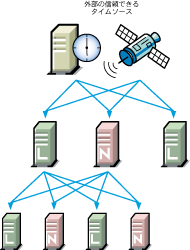 階層内の各サーバは、少なくとも2つのソースから時刻を受信するように設定する必要があります。