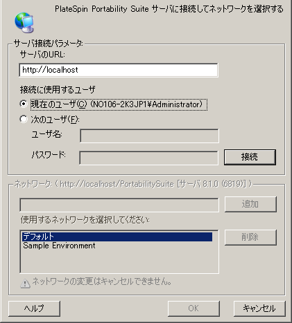 PlateSpin Migrate Serverに接続するには、Portability Suite Serverホストに対する管理アクセスが可能であるか、PlateSpin Migrateの役割のメンバーである必要があります。Section 2.2.1, ユーザ権限および認証の設定を参照してください。 |