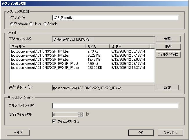 <引数>の部分を必要なコマンド引数で置き換え(スペース区切り)、<タイムアウト>の部分をタイムアウト値(秒)で置き換えます。指定しない場合、デフォルトのタイムアウト(60秒)が使用されます。