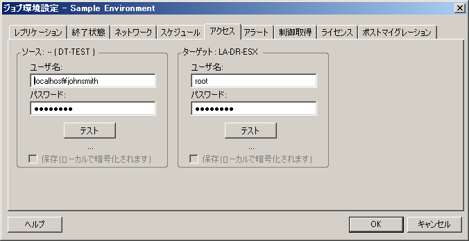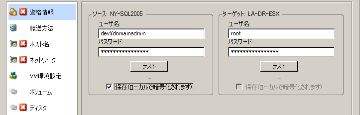マイグレーションジョブが適切に実行されるためには、ソースおよびターゲットの有効な資格情報を提供する必要があります。